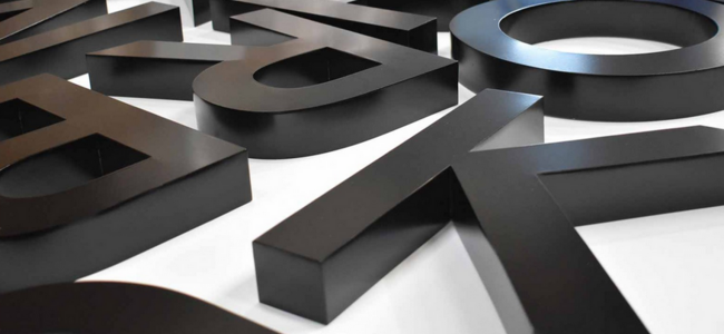 Letras corpóreas huecas con volumen. Con o sin iluminación. Diferentes materiales y acabados